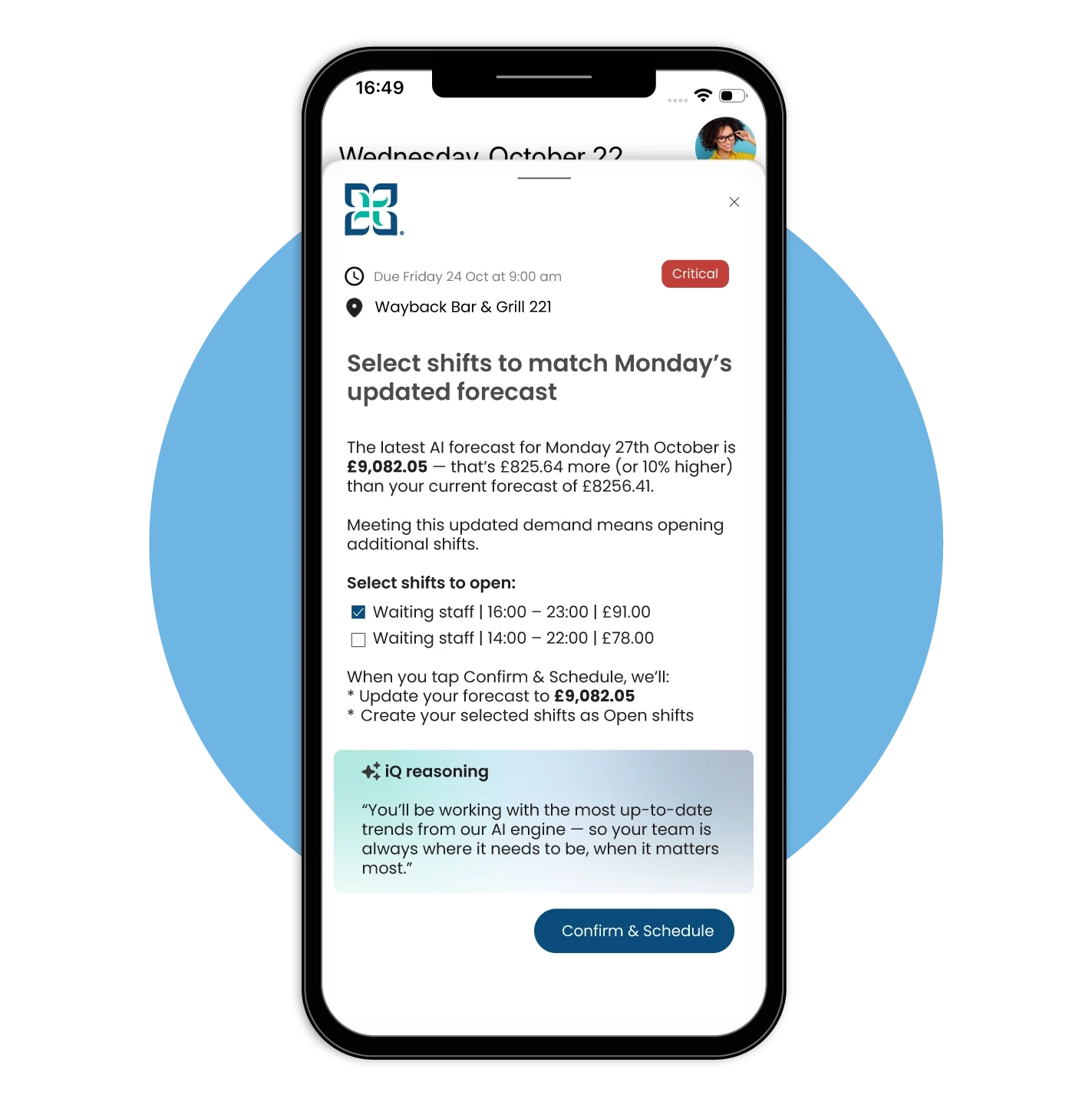 Alongside the new Forecast Labour Adjustment, iQ 2.1 introduces a range of recommendations that make day-to-day operations simpler and smarter:
