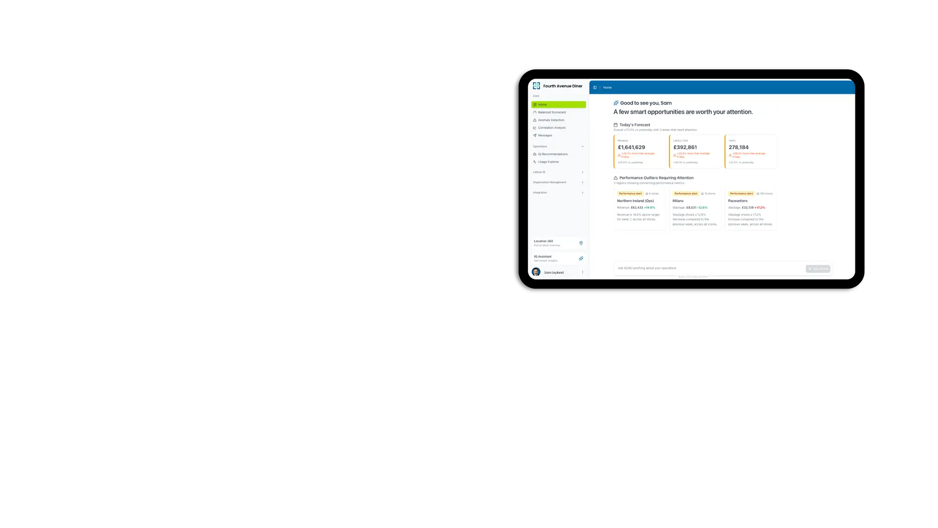 Ask. Understand. Act – Highlights emerging issues in labor, sales, waste, or execution, enabling above-store teams to adjust guidance before problems reach the store floor.